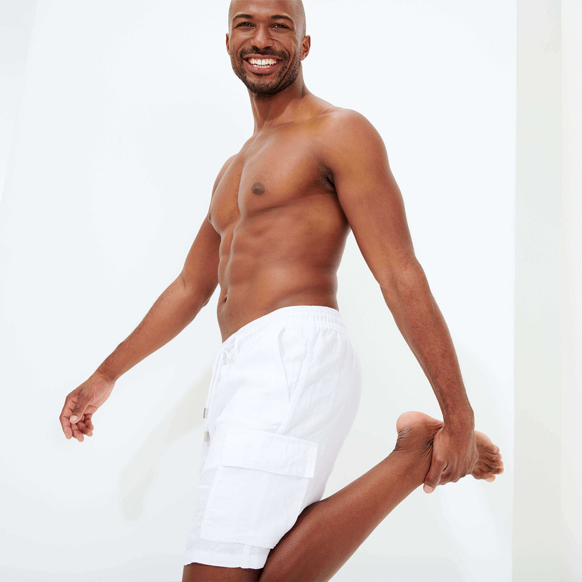 Esnek ve rahat keten kumaştan üretilen, zamansız ve rahat erkek bermuda şortları, Vilebrequin koleksiyonunun önemli bir parçasıdır.