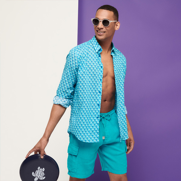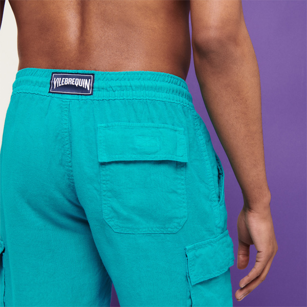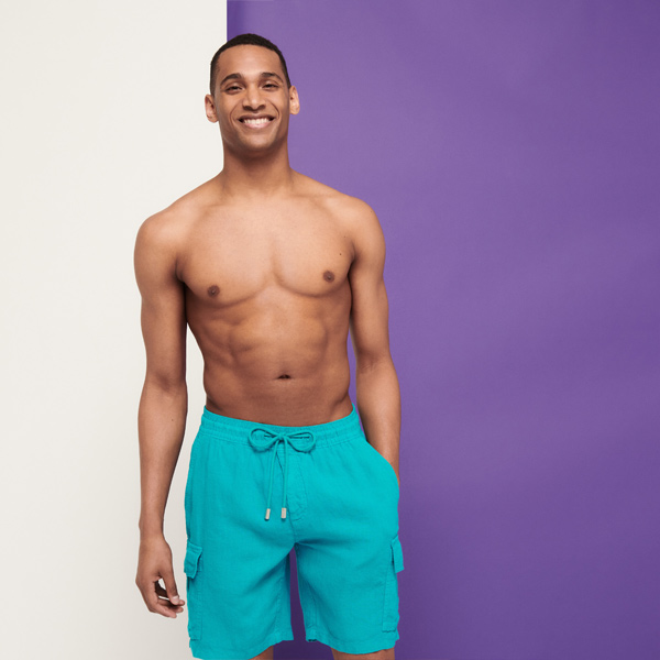 Esnek ve rahat keten kumaştan üretilen, zamansız ve rahat Baie erkek bermuda şortları, Vilebrequin koleksiyonunun önemli bir parçasıdır.