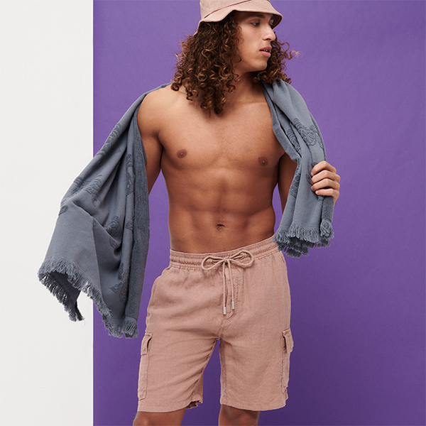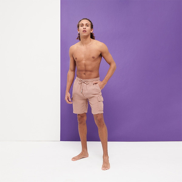 Esnek ve rahat keten kumaştan üretilen, zamansız ve rahat Baie erkek bermuda şortları, Vilebrequin koleksiyonunun önemli bir parçasıdır.