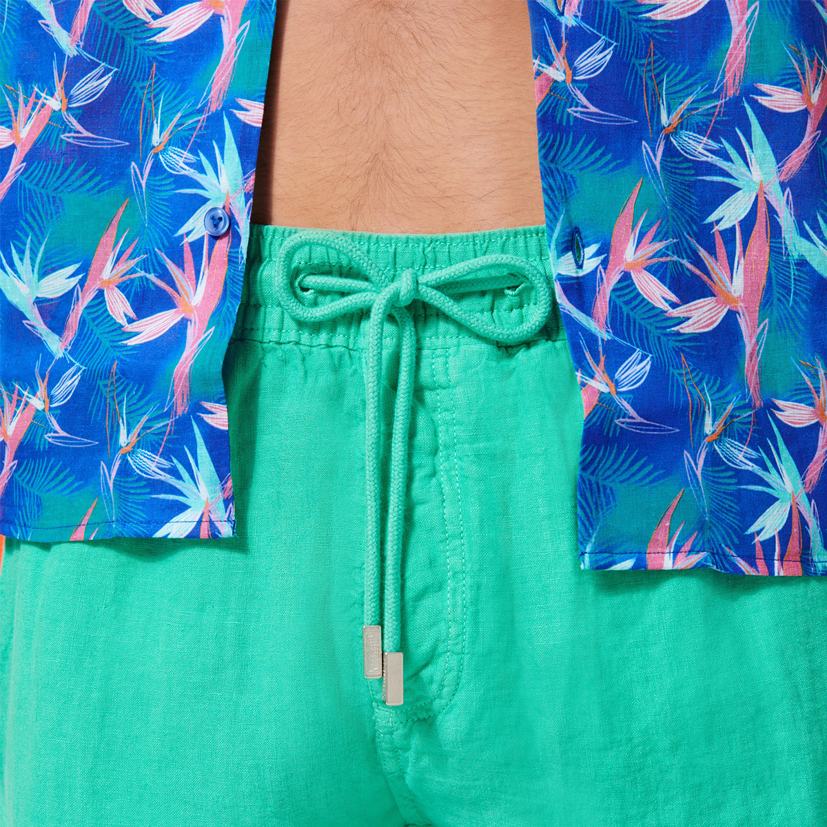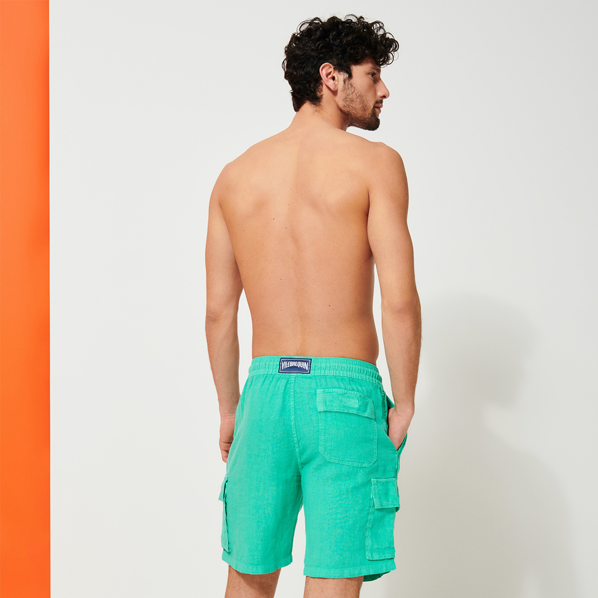 Esnek ve rahat keten kumaştan üretilen, zamansız ve rahat Baie erkek bermuda şortları, Vilebrequin koleksiyonunun önemli bir parçasıdır.