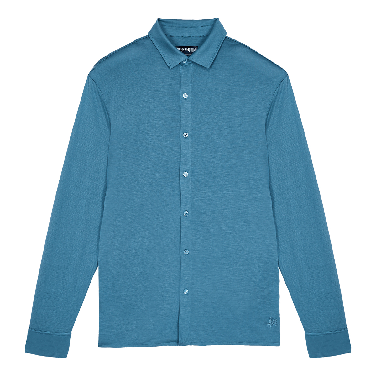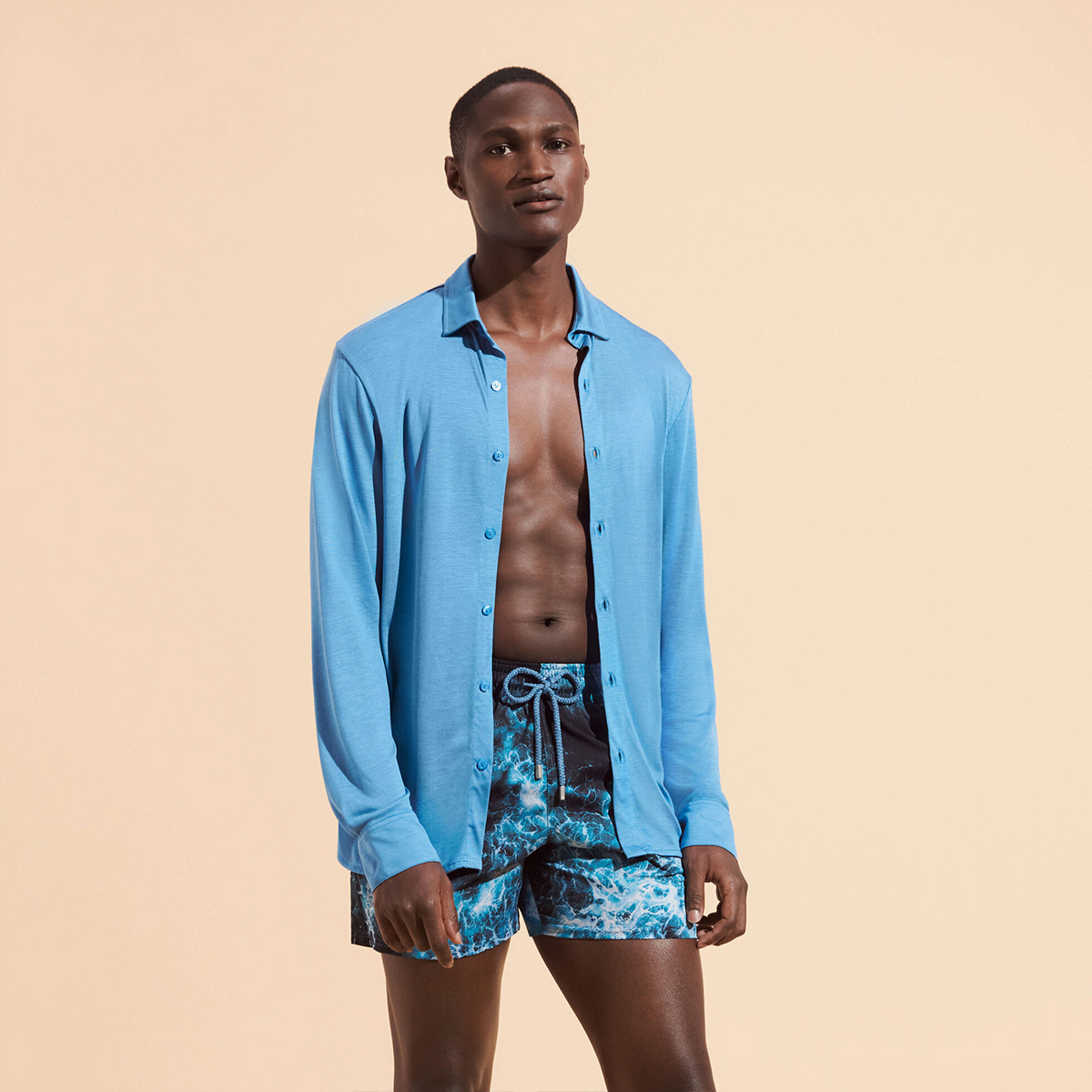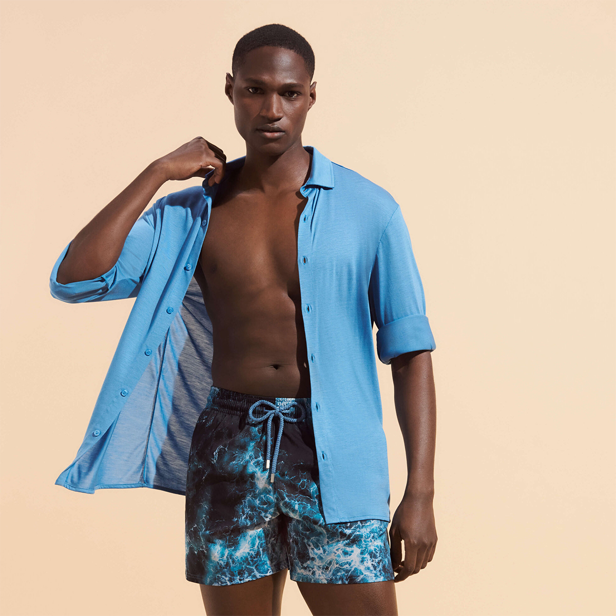 Calandre erkek gömleğinin yumuşak rahat Tencel dokusu sizi asla yarı yolda bırakmaz. Rahat bir görünüm için kolları kıvırabilir, özel bir stil için düğmelerini açık bırakabilirsiniz. Bu gömlek ipeksi görünümü ve mükemmel uyumu, ince Vilebrequin düğmeleri ve aynı ton işlemeli kaplumbağa tonu ile şık bir görünüm sağlıyor. Tencel gömlek, hava ne kadar sıcak olursa olsun nem düzenleyici yapısı ve serin dokusu ile size sınırsız konfor sunuyor.