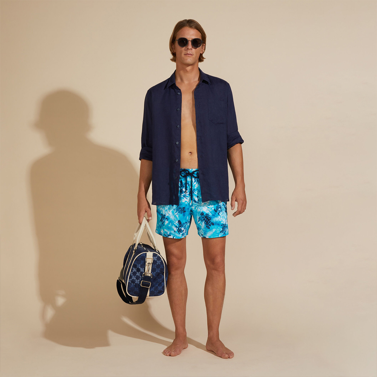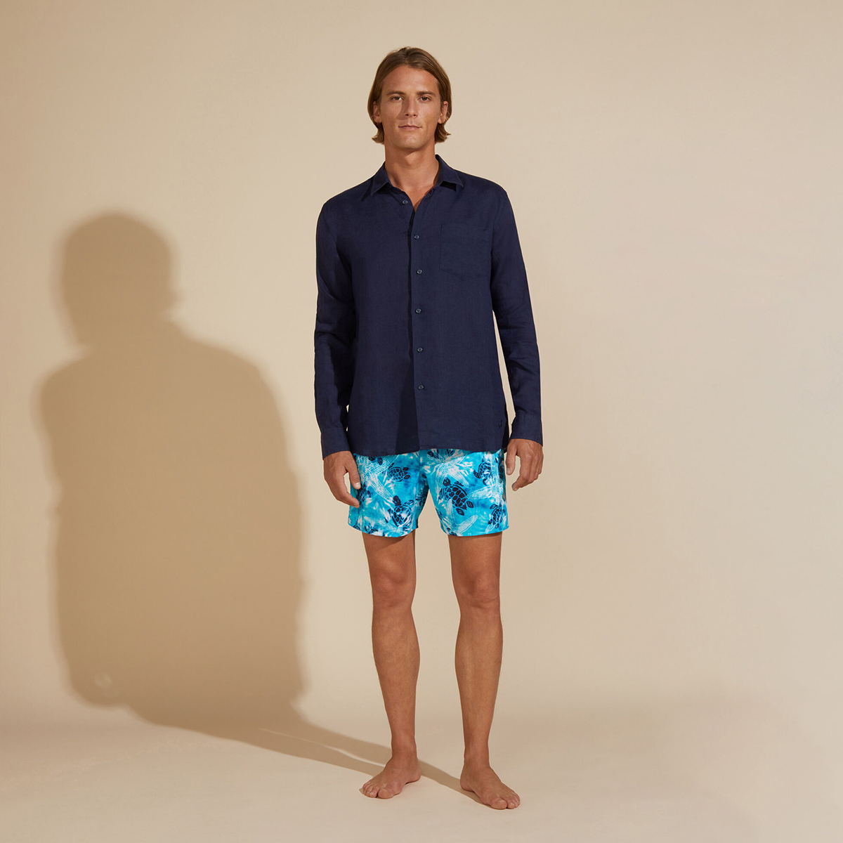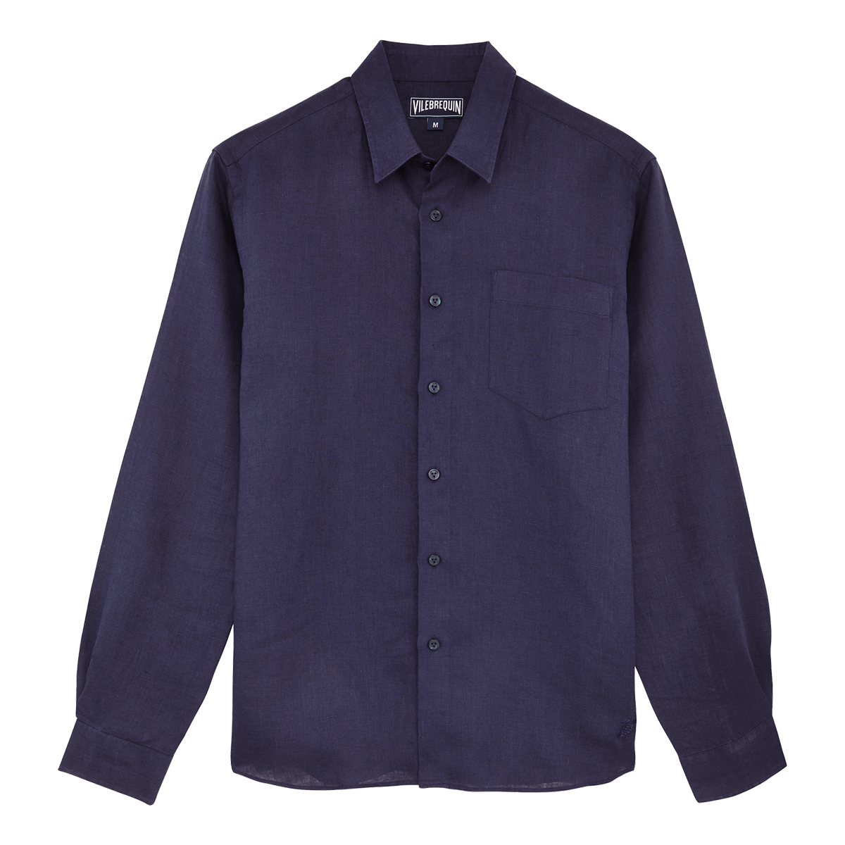Uzun kollu keten gömlekler, Vilebrequin’in St Tropez’den ilham alan stilini klasik, sade bir kesimle gösteriyor. Yumuşak keten kumaştan yapılmış bu gömlek, eteğinde aynı tonda işlenmiş ikonik kaplumbağa logosu ile dikkat çekiyor.