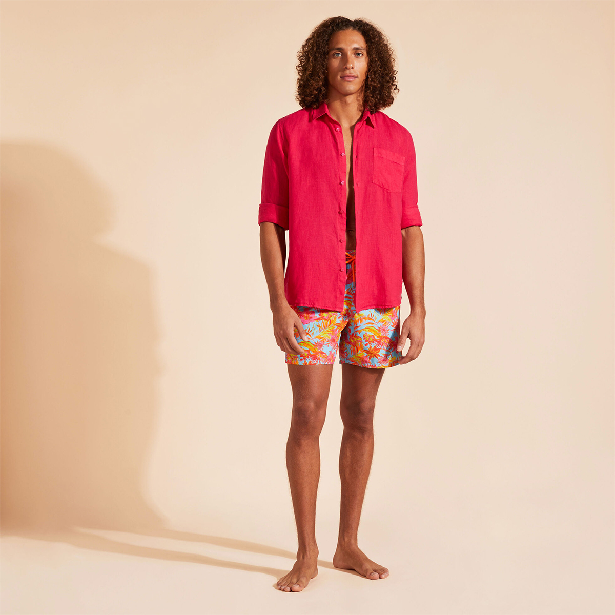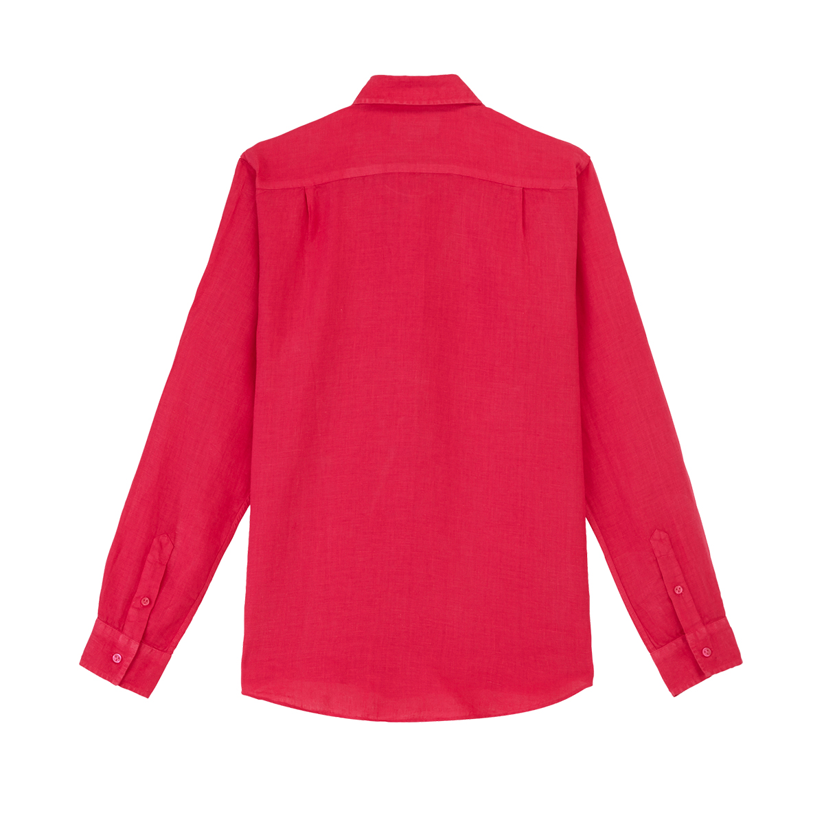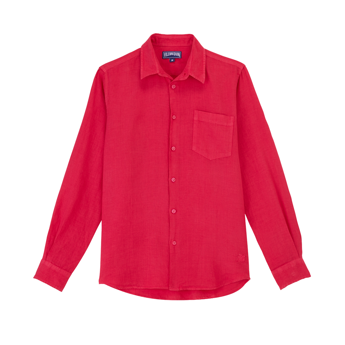 Caroubis uzun kollu keten gömlekler, Vilebrequin’in St Tropez’den ilham alan stilini klasik, sade bir kesimle gösteriyor. Yumuşak keten kumaştan yapılmış bu gömlek, eteğinde aynı tonda işlenmiş ikonik kaplumbağa logosu ile dikkat çekiyor.