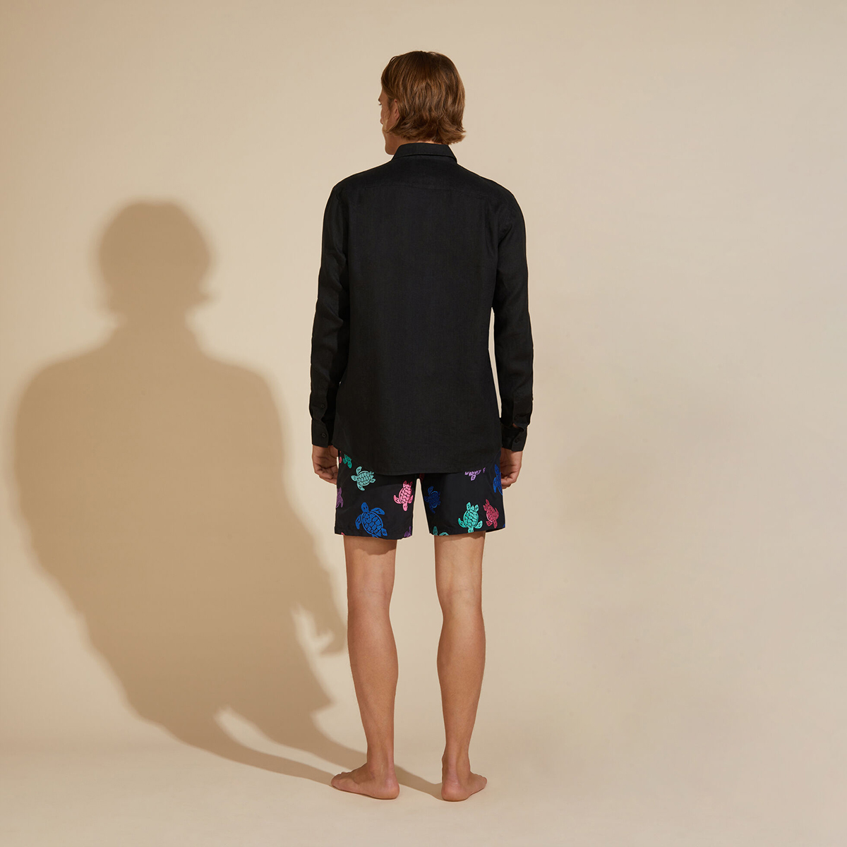 Caroubis uzun kollu keten gömlekler, Vilebrequin’in St Tropez’den ilham alan stilini klasik, sade bir kesimle gösteriyor. Yumuşak keten kumaştan yapılmış bu gömlek, eteğinde aynı tonda işlenmiş ikonik kaplumbağa logosu ile dikkat çekiyor.