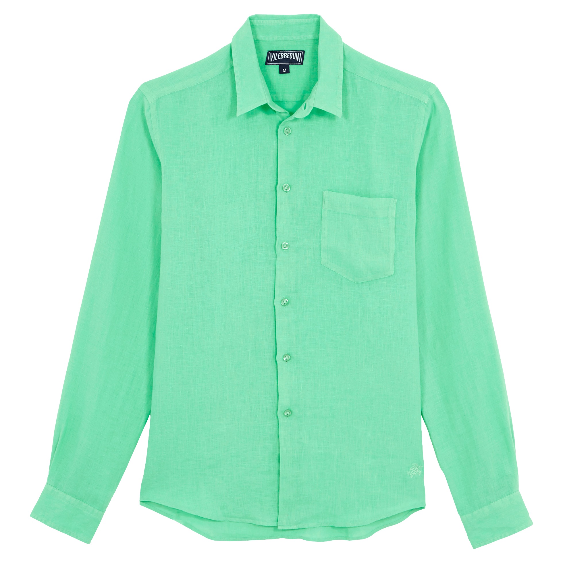 Caroubis uzun kollu keten gömlekler, Vilebrequin’in St Tropez’den ilham alan stilini klasik, sade bir kesimle gösteriyor. Yumuşak keten kumaştan yapılmış bu gömlek, eteğinde aynı tonda işlenmiş ikonik kaplumbağa logosu ile dikkat çekiyor.