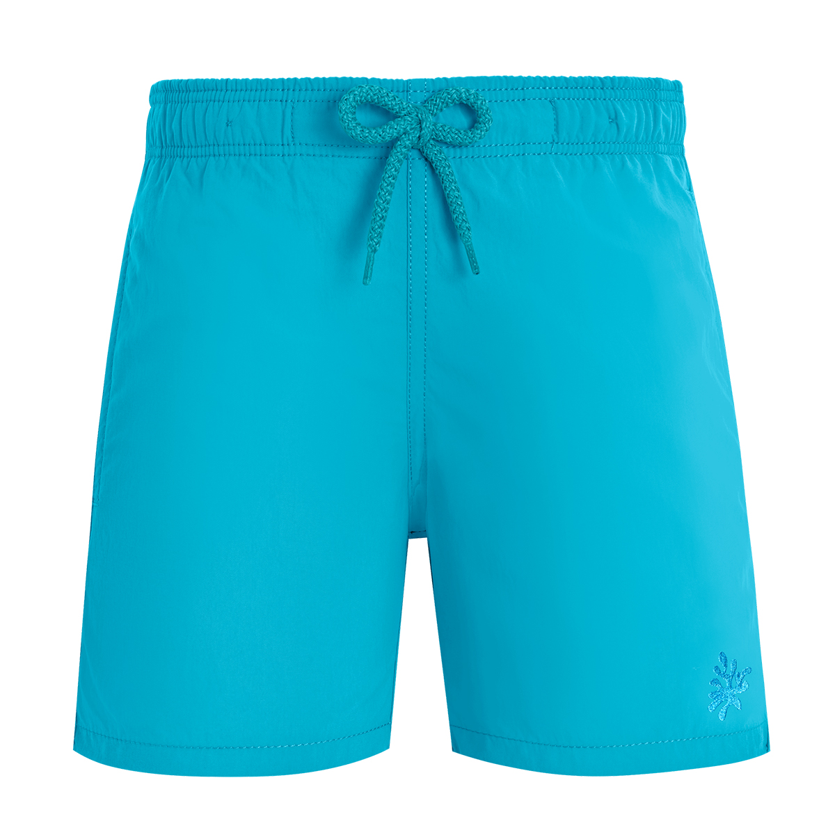 Bu Water-Reactive erkek çocuk mayolarının üzerindeki su desenleri saklambaç oynuyor çünkü ıslandığında ortaya çıkıyorlar ve kuruduğunda kayboluyorlar. Kuruduğunda düz renk olan bu mayolar, kumaş suyla temas eder etmez neşeli desenlerle kaplanır. Elastik kemer