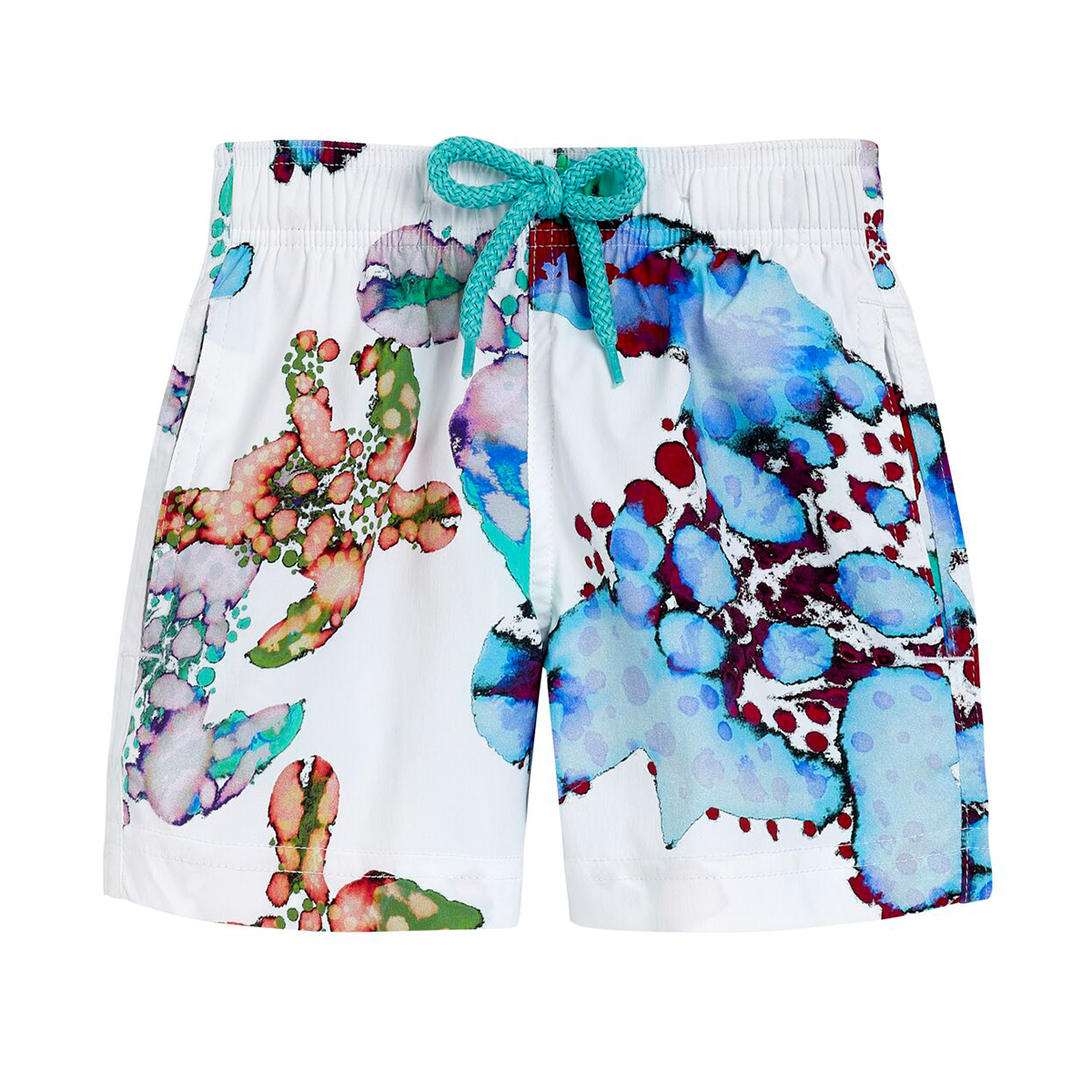 Yumuşak ve hafif Jirise erkek çocuk yüzme şortu, streç kalıbıyla Vilebrequin tasarımına yeni bir yorum getiriyor. Erkek Moorise modelinin çocuklar için uyarlanmış bu versiyonu iki yan ceplerine ek olarak sabit bir düğüme, elastik bel bandına ve arka cebe sahiptir.