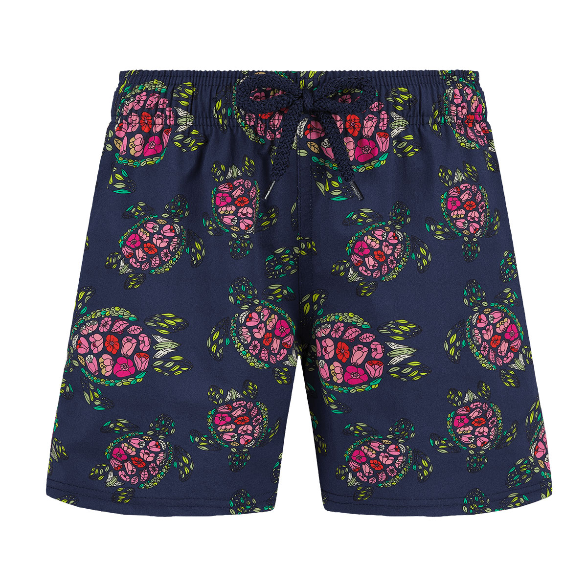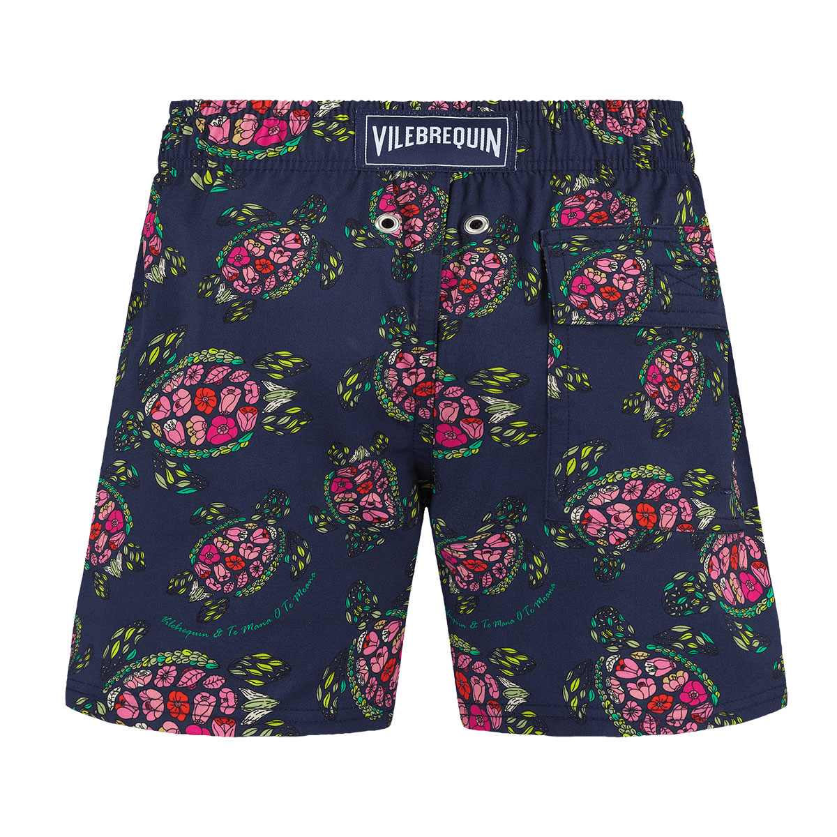 Yumuşak ve hafif Jirise erkek çocuk yüzme şortu, streç kalıbıyla Vilebrequin tasarımına yeni bir yorum getiriyor. Erkek Moorise modelinin çocuklar için uyarlanmış bu versiyonu iki yan ceplerine ek olarak sabit bir düğüme, elastik bel bandına ve arka cebe sahiptir.