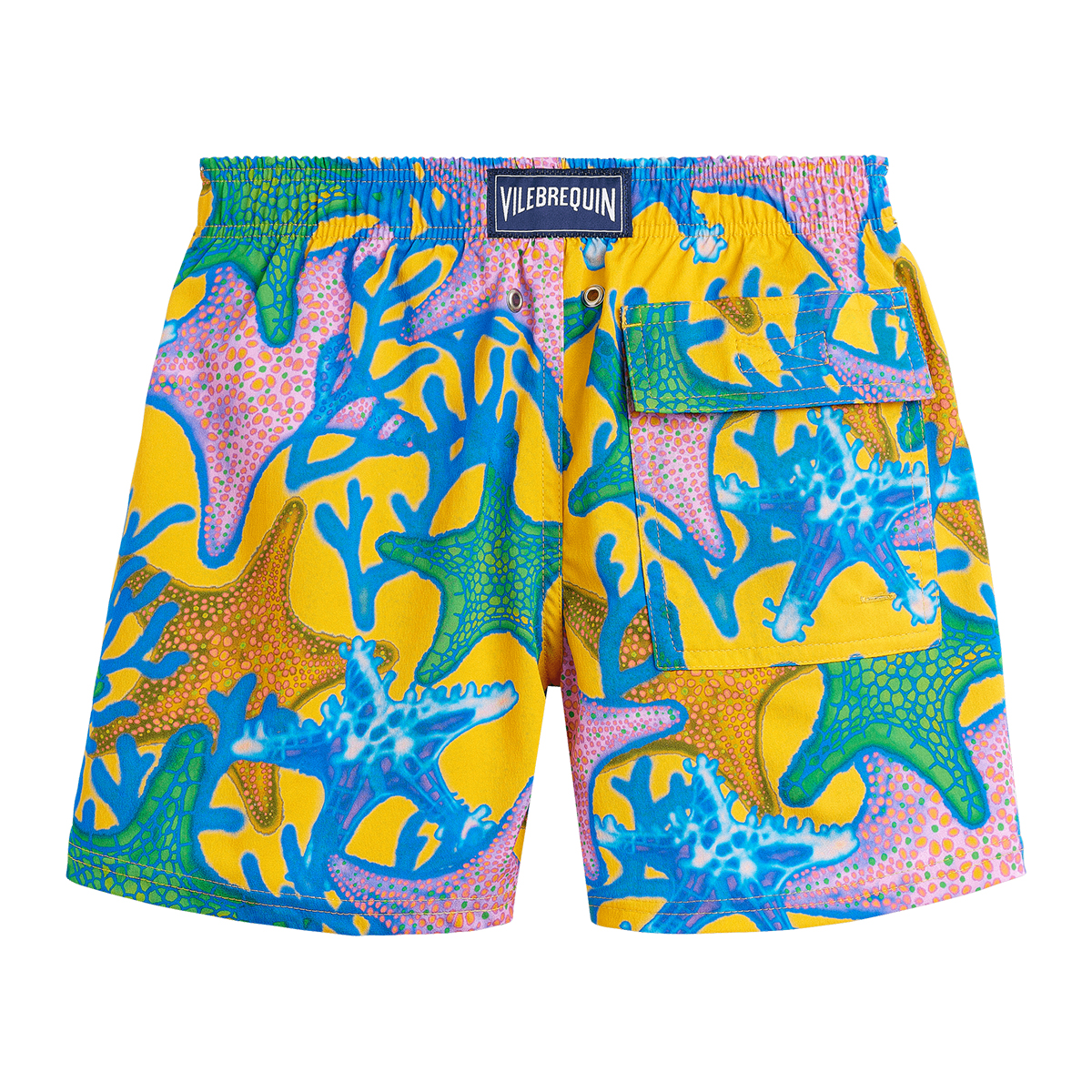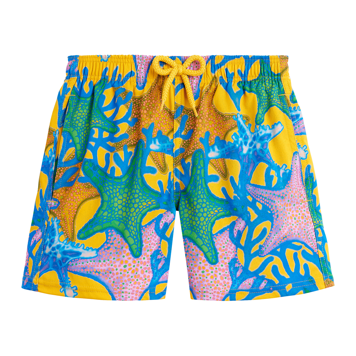 Yumuşak ve hafif Jirise erkek çocuk yüzme şortu, streç kalıbıyla Vilebrequin tasarımına yeni bir yorum getiriyor. Erkek Moorise modelinin çocuklar için uyarlanmış bu versiyonu iki yan ceplerine ek olarak sabit bir düğüme, elastik bel bandına ve arka cebe sahiptir. Elastik kemer Yan cepler Cırt cırtlı arka cep Hava tahliyesi için delikler Hızlı kuruyan kumaş 2 yaş yan bacak uzunluğu: 22.5 cm, 6 yaş: 29.5 cm