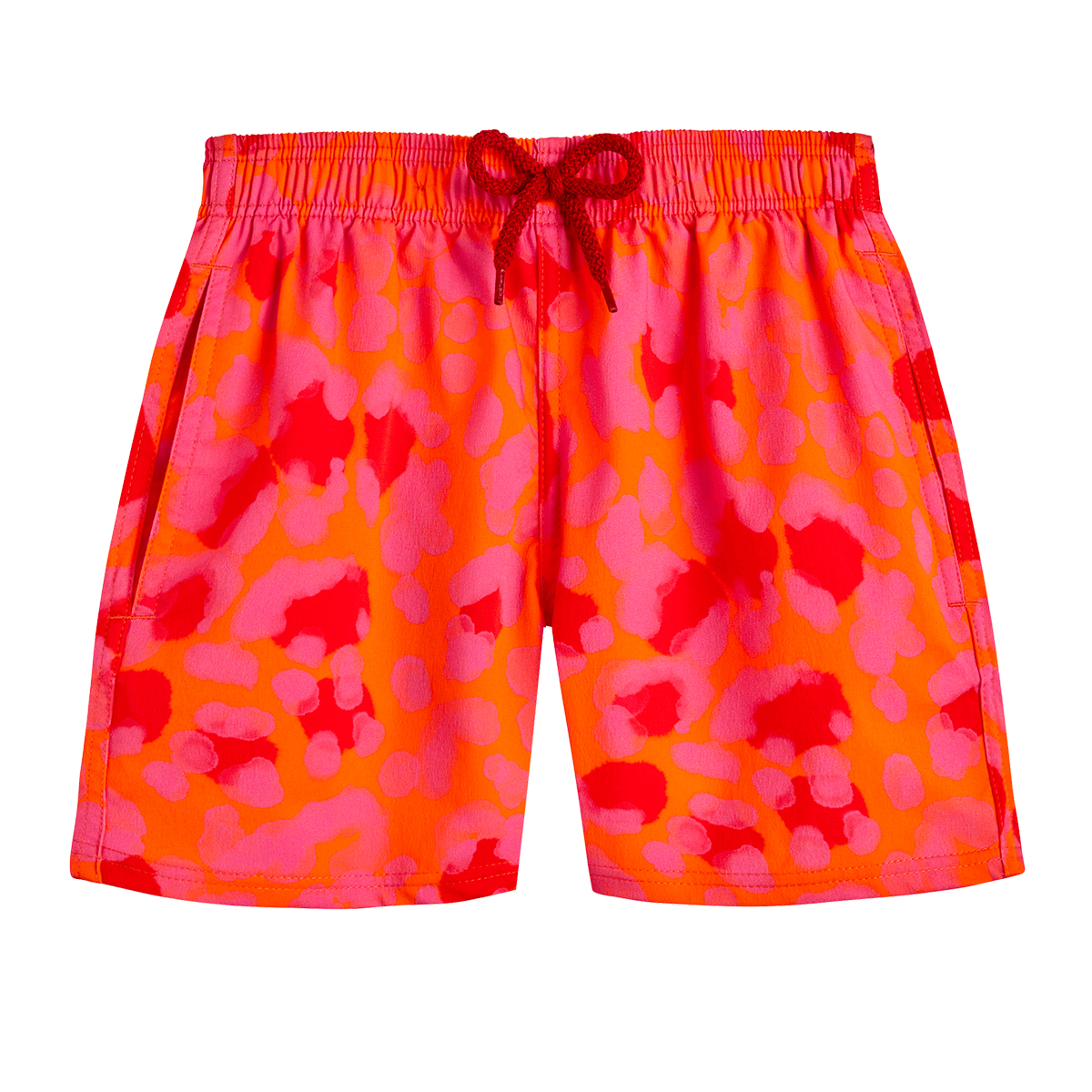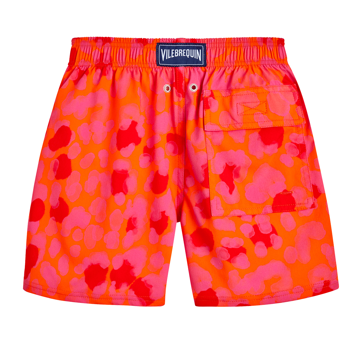 Yumuşak ve hafif Jirise erkek çocuk yüzme şortu, streç kalıbıyla Vilebrequin tasarımına yeni bir yorum getiriyor. Erkek Moorise modelinin çocuklar için uyarlanmış bu versiyonu iki yan ceplerine ek olarak sabit bir düğüme, elastik bel bandına ve arka cebe sahiptir.