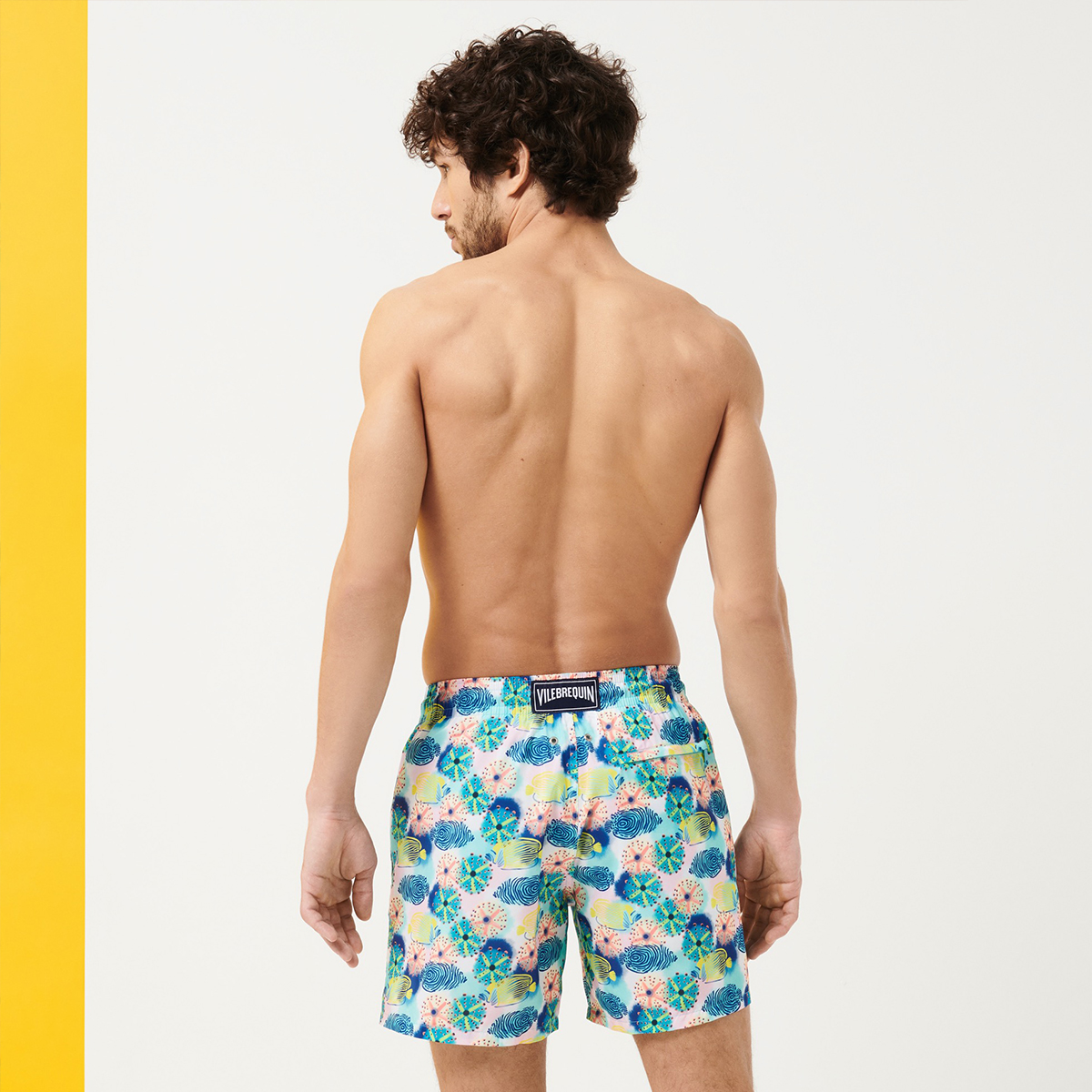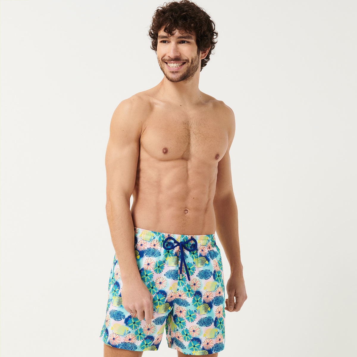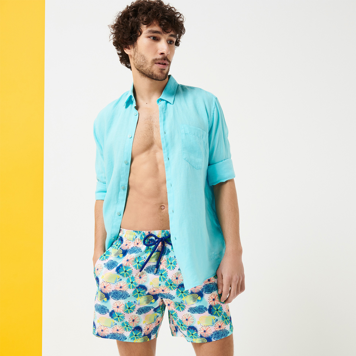 Bu çok hafif kumaşı ile dikkat çeken mayo, katlanarak arka cebine sığıyor ve üzerinde kauçuk Vilebrequin logosu yer alan bir keseye dönüşebiliyor.