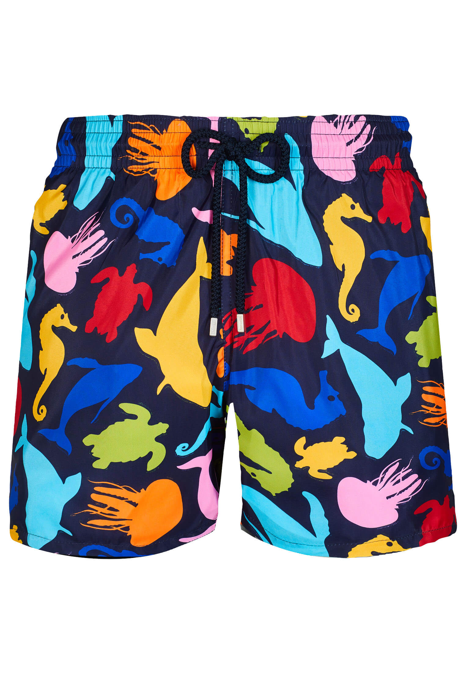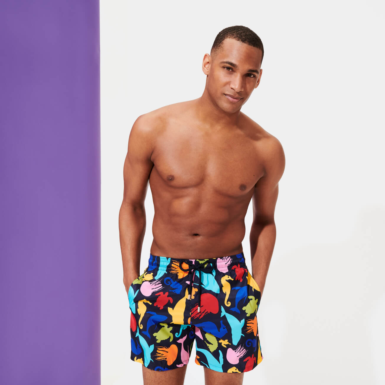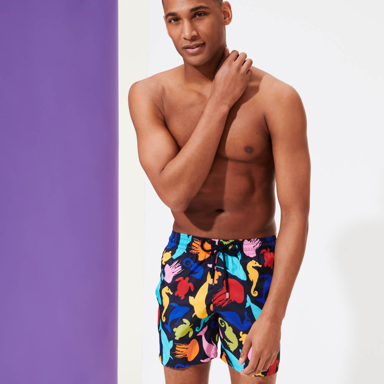 Bu çok hafif kumaşı ile dikkat çeken mayo, katlanarak arka cebine sığıyor ve üzerinde kauçuk Vilebrequin logosu yer alan bir keseye dönüşebiliyor.