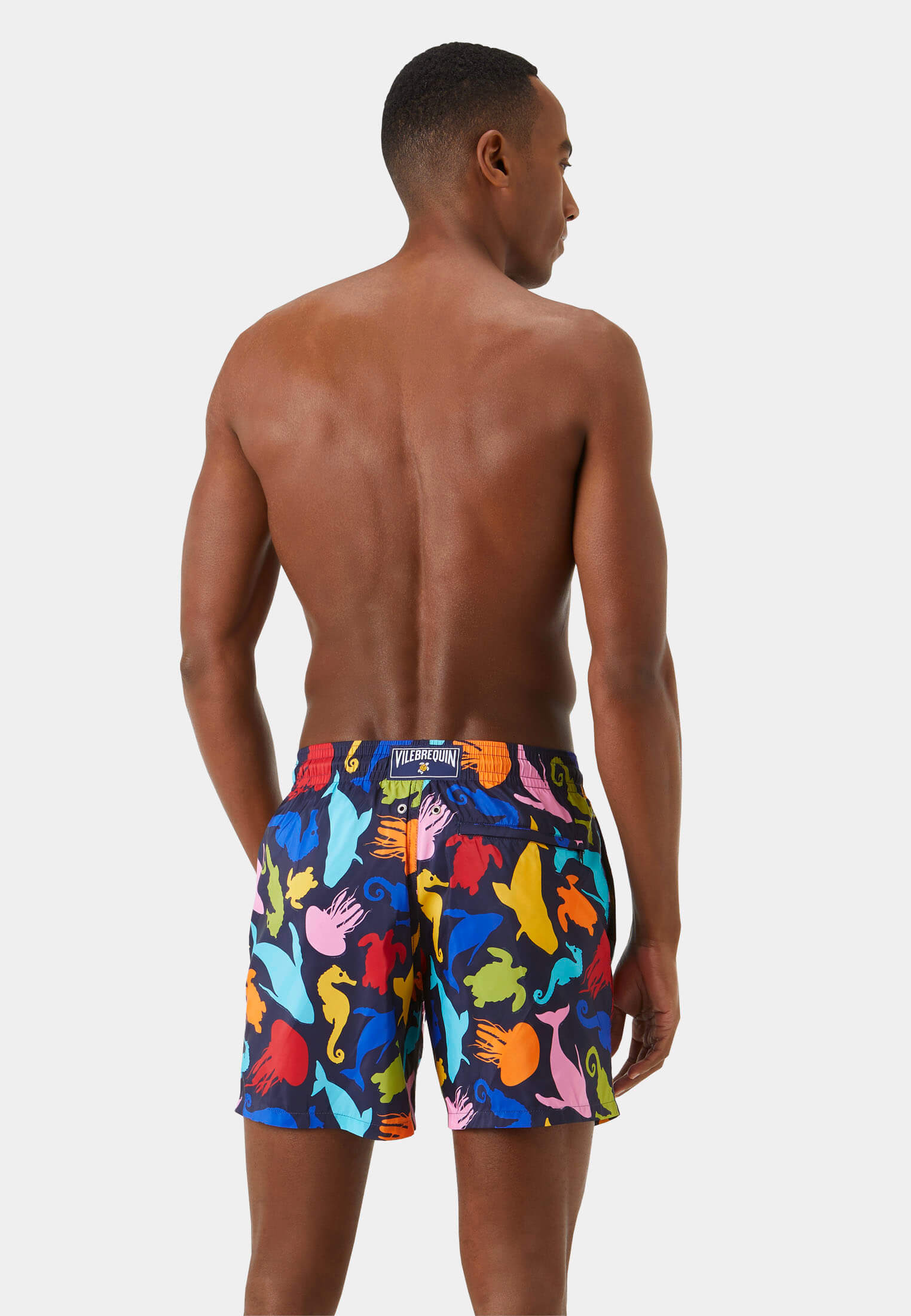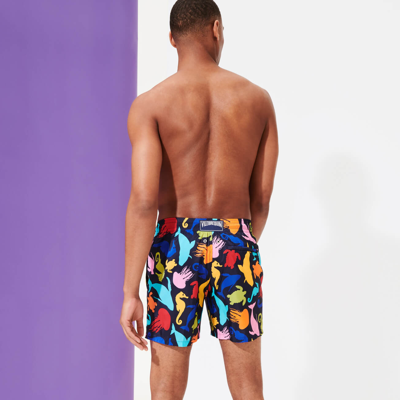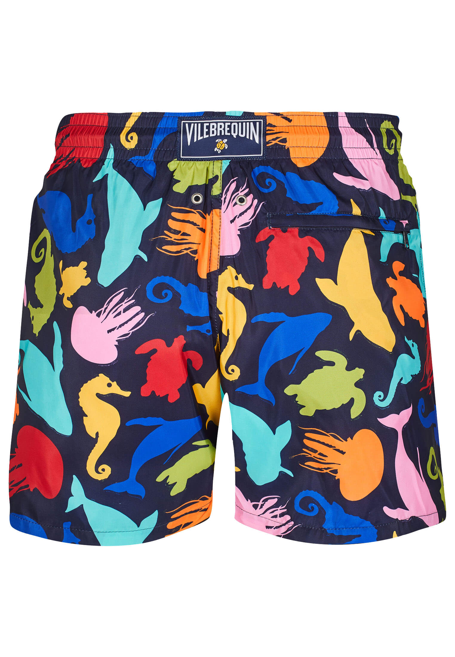 Bu çok hafif kumaşı ile dikkat çeken mayo, katlanarak arka cebine sığıyor ve üzerinde kauçuk Vilebrequin logosu yer alan bir keseye dönüşebiliyor.