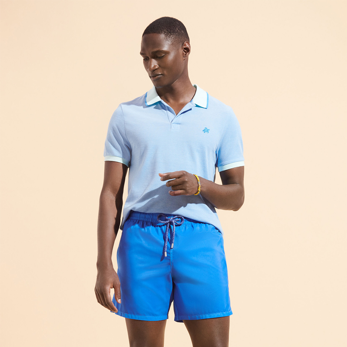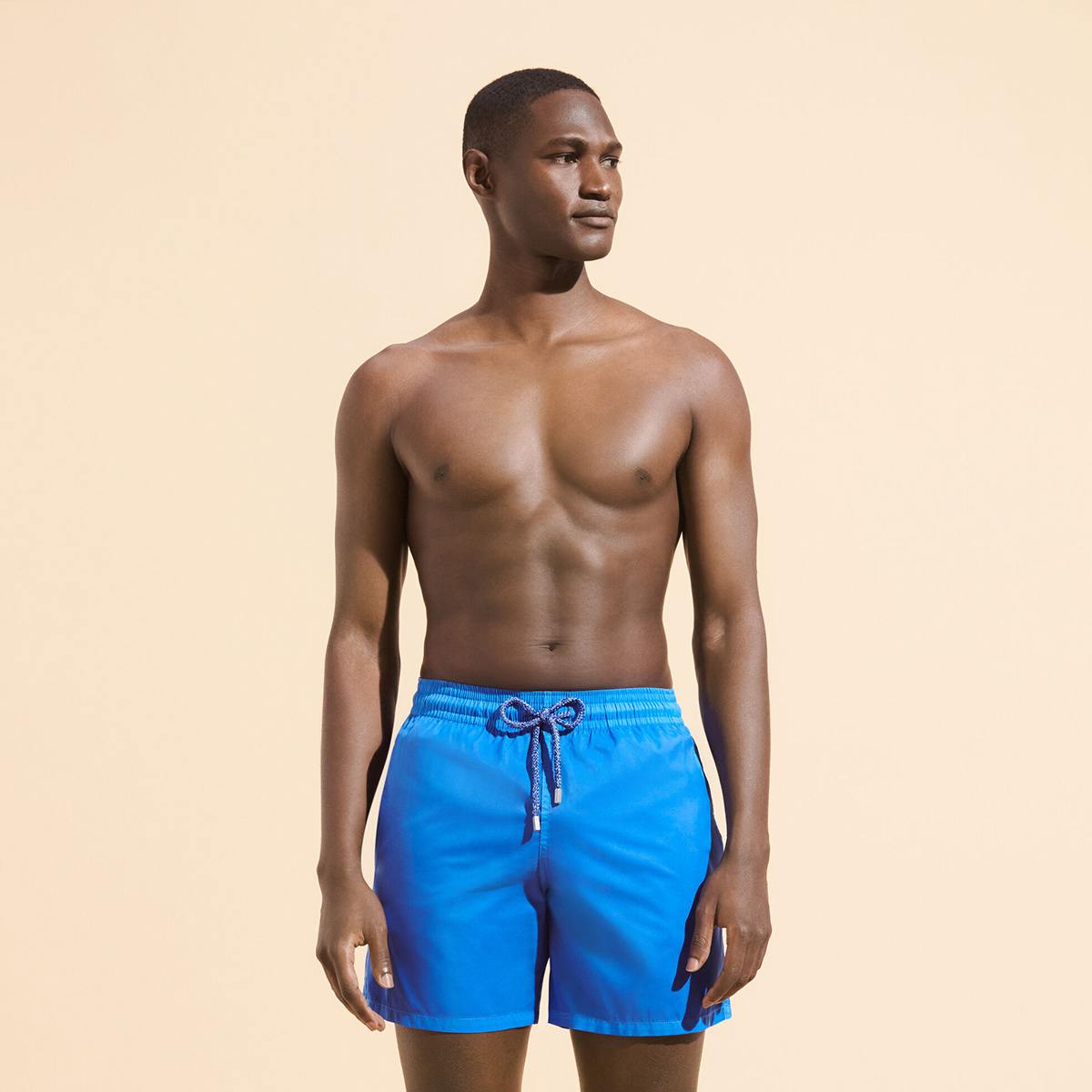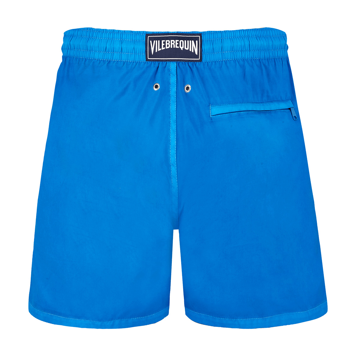 Bu çok hafif kumaşı ile dikkat çeken mayo, katlanarak arka cebine sığıyor ve üzerinde kauçuk Vilebrequin logosu yer alan bir keseye dönüşebiliyor.