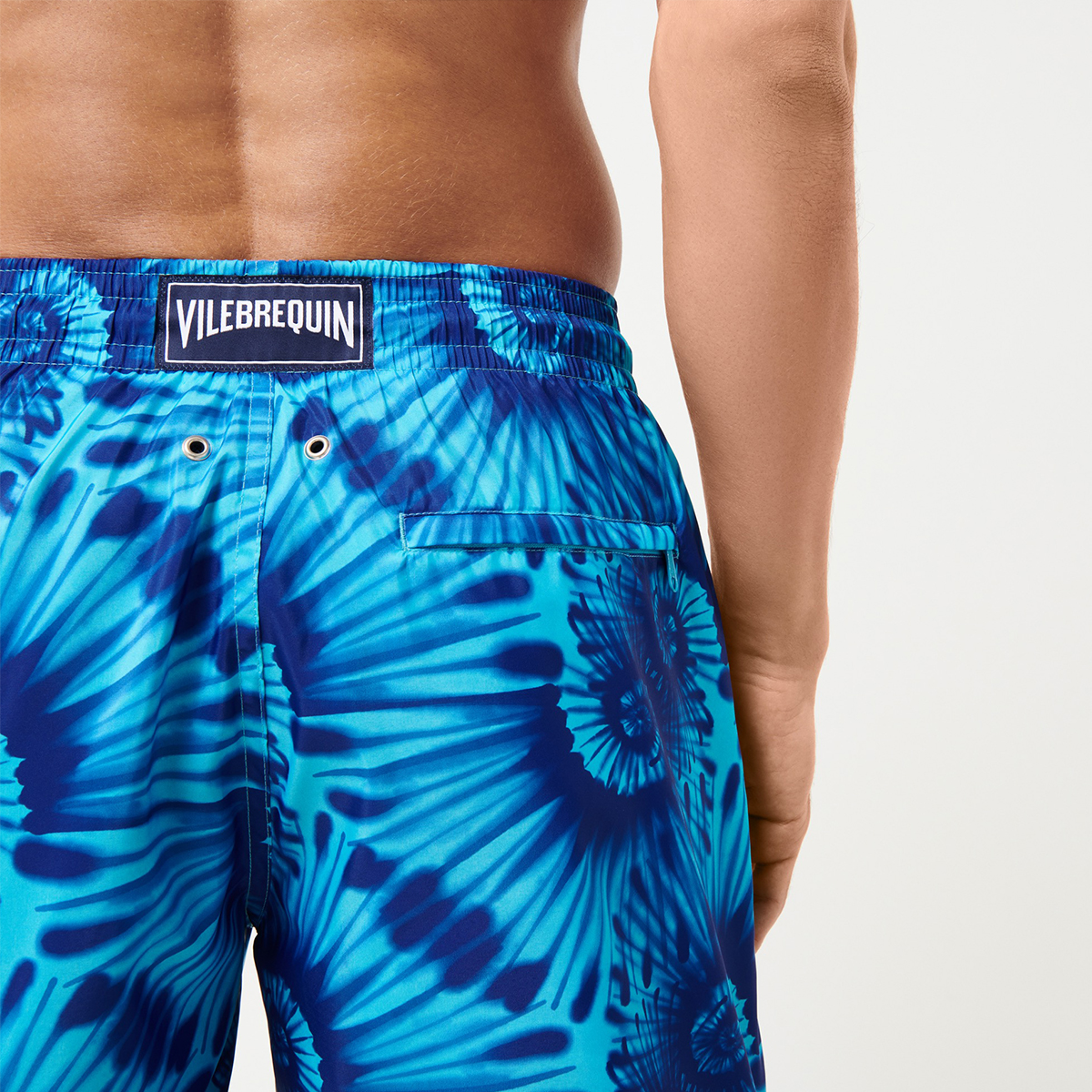 Bu çok hafif kumaşı ile dikkat çeken mayo, katlanarak arka cebine sığıyor ve üzerinde kauçuk Vilebrequin logosu yer alan bir keseye dönüşebiliyor.