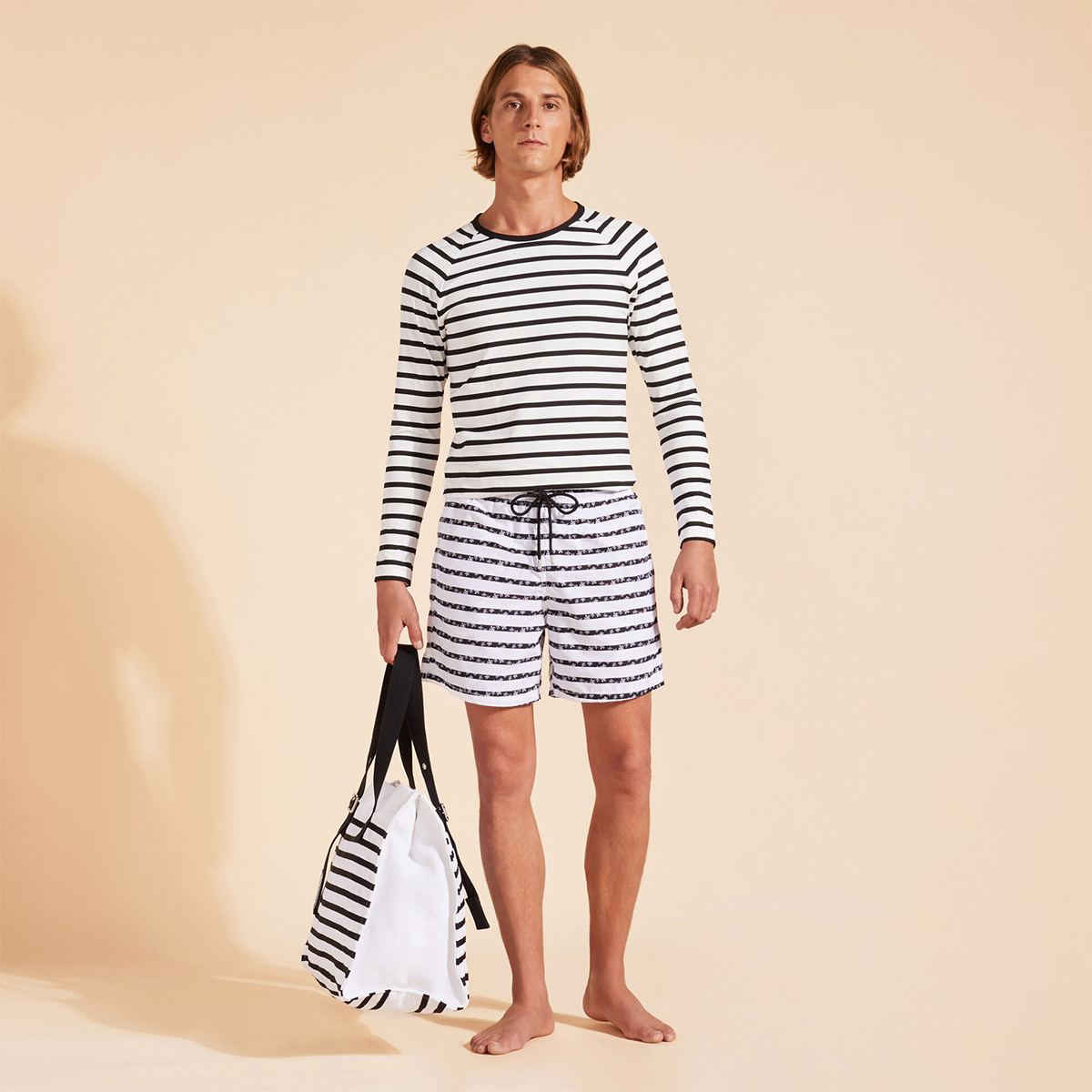 Vilebrequin’in ikonik, 1970’lerden gelen, Vilebrequin ruhuna sadık ve en sevilen stili. Yumuşak, çabuk kuruyan kumaştan yapılmış bu mayo, iki yan cebi ve arka cebi ile konfor sunuyor. Elastik bel kemerli mayo ve Zamac uçlu büzme ipi ile stil tamamlanıyor.