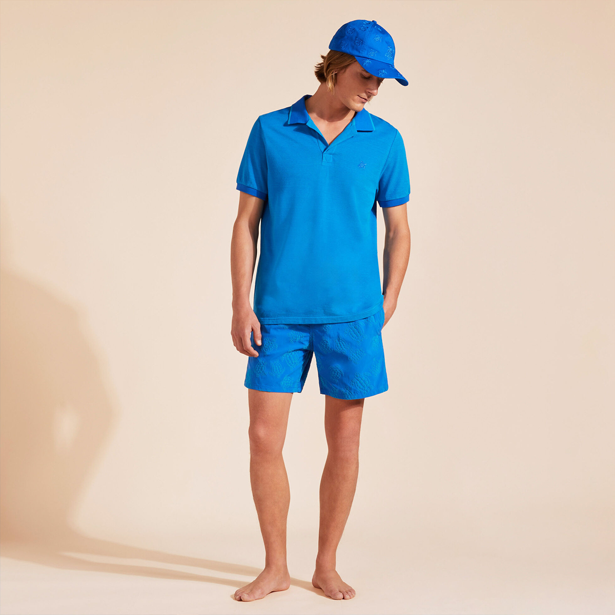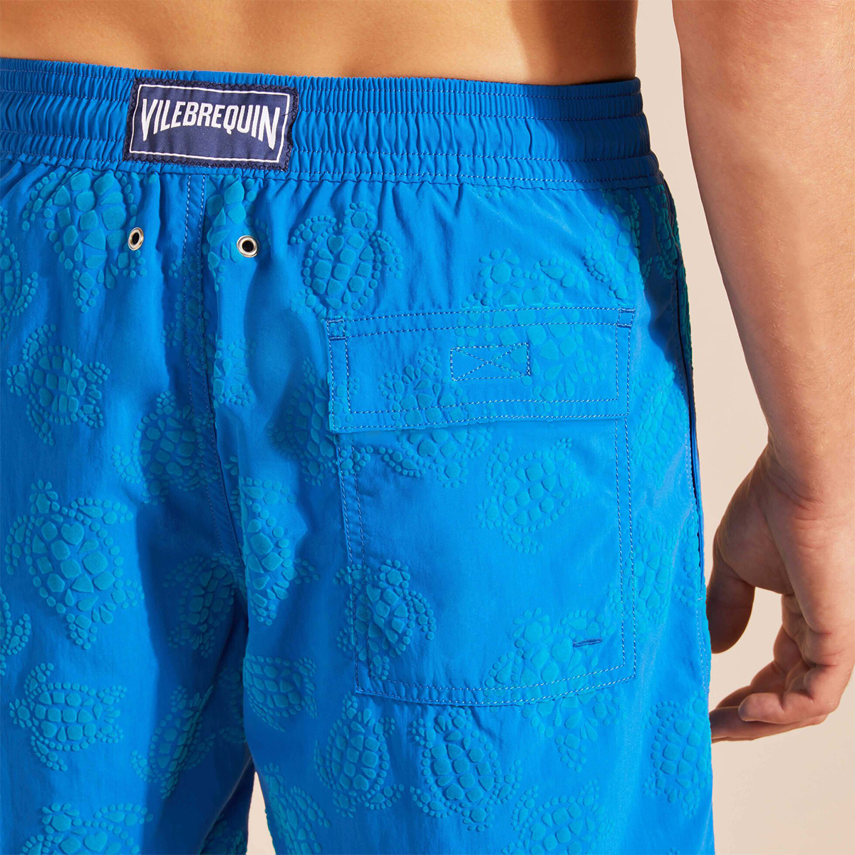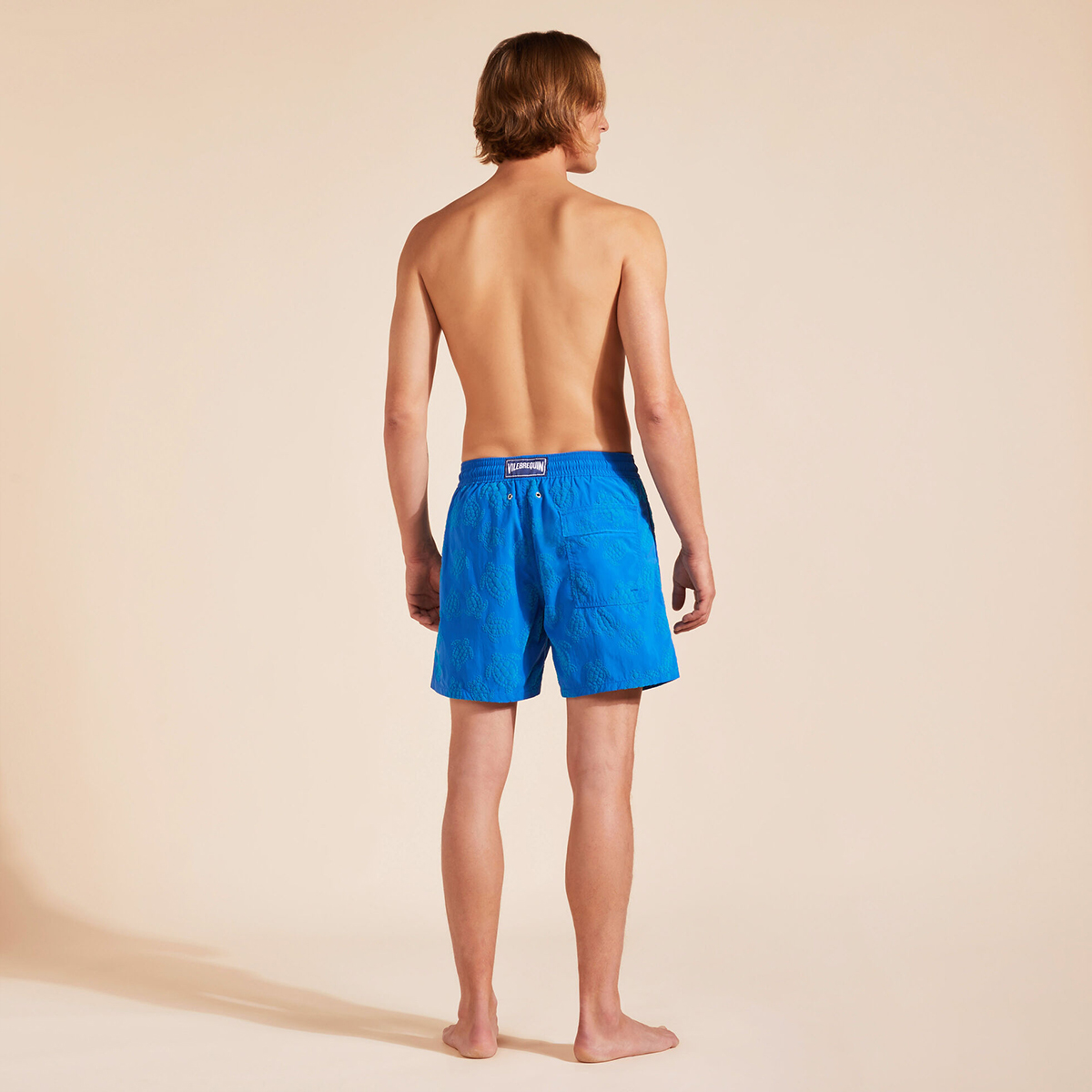 Kadife dokunuşlu, geri dönüştürülmüş poliamidden yapılmış bu erkek mayo şortu, ekstra konfor için tasarlandı.
