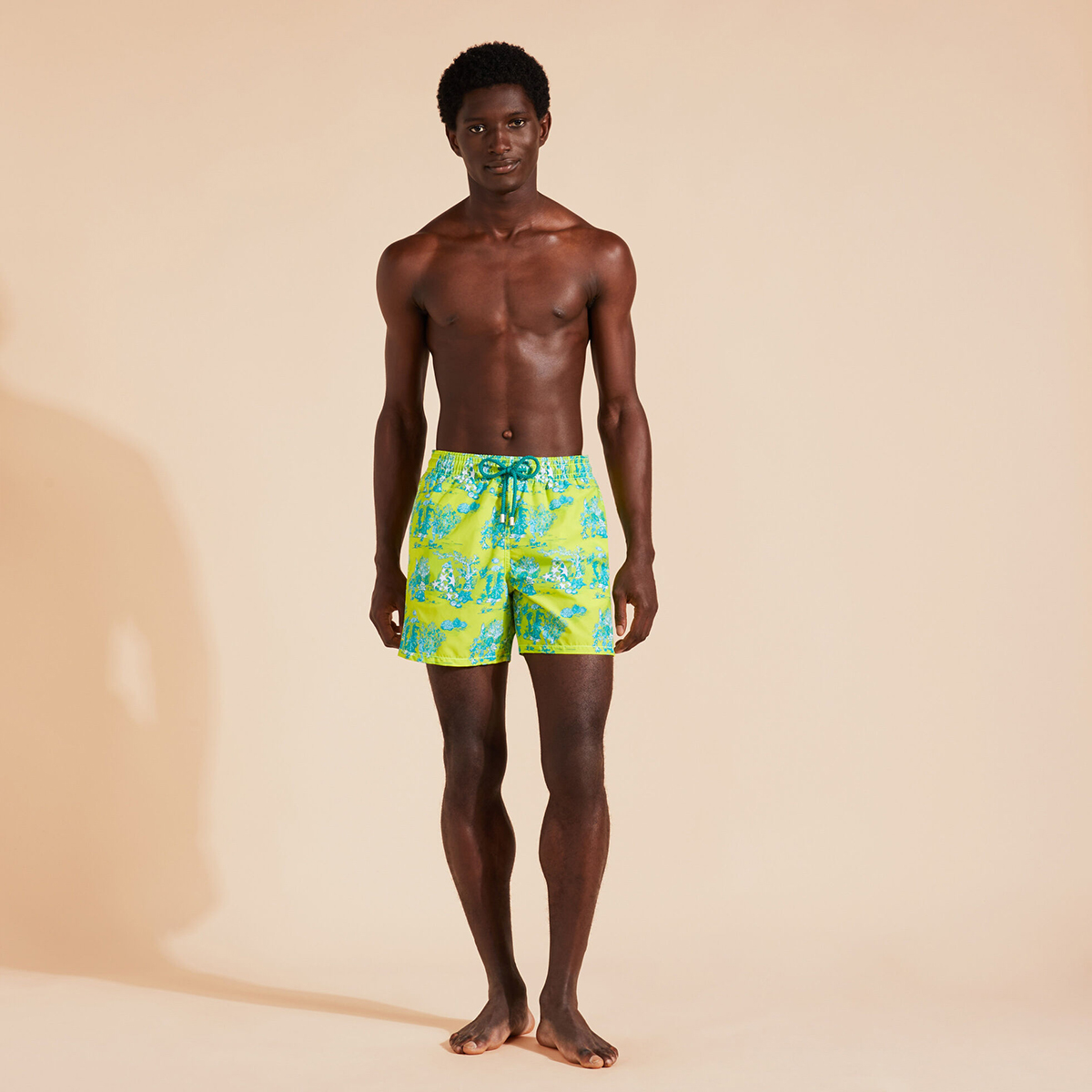Vilebrequin’in ikonik, 1970’lerden gelen, Vilebrequin ruhuna sadık ve en sevilen stili. Yumuşak, çabuk kuruyan kumaştan yapılmış bu mayo, iki yan cebi ve arka cebi ile konfor sunuyor. Elastik bel kemerli mayo ve Zamac uçlu büzme ipi ile stil tamamlanıyor.