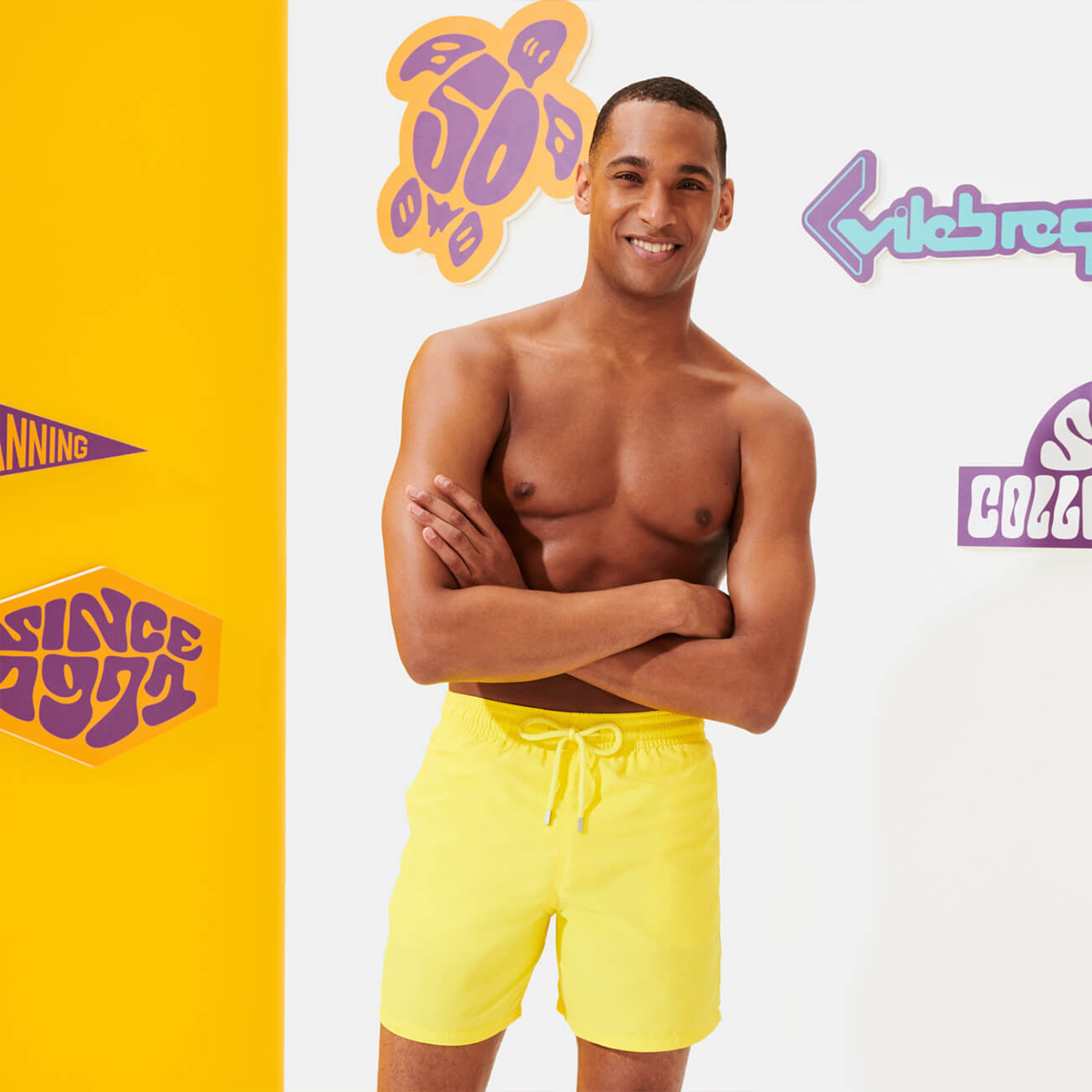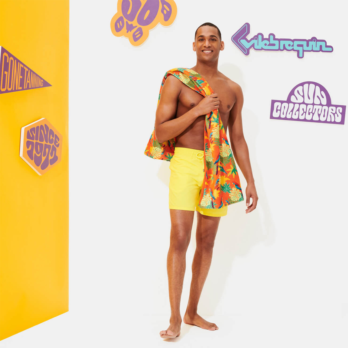 Vilebrequin’in ikonik, 1970’lerden gelen, Vilebrequin ruhuna sadık ve en sevilen stili. Yumuşak, çabuk kuruyan kumaştan yapılmış bu mayo, iki yan cebi ve arka cebi ile konfor sunuyor. Elastik bel kemerli mayo ve Zamac uçlu büzme ipi ile stil tamamlanıyor.