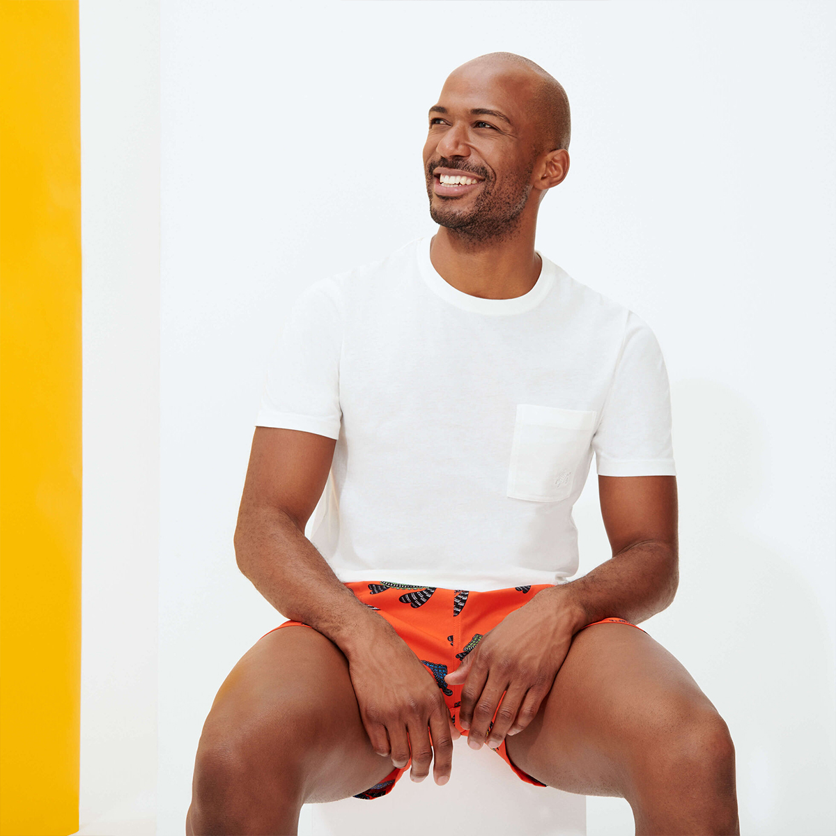 Yaz gardırobunun olmazsa olmazı, organik pamuktan yapılmış, TITUS kısa kollu erkek tişörtü, keten pantolonlar veya bir yüzme şortu ile kombinlendiğinde kusursuz bir görünüm sağlar.