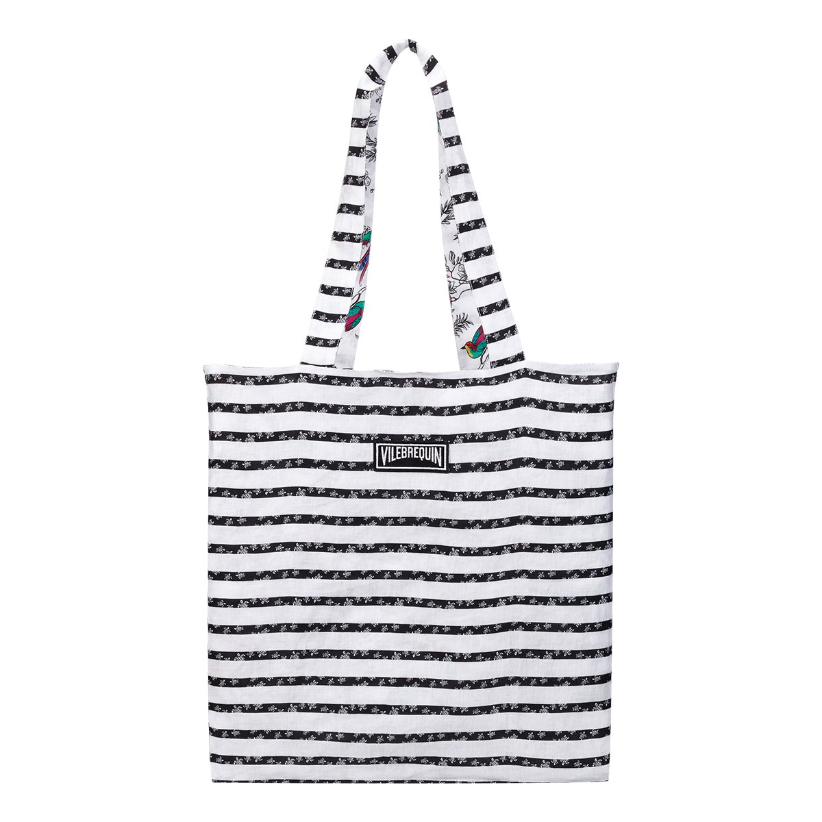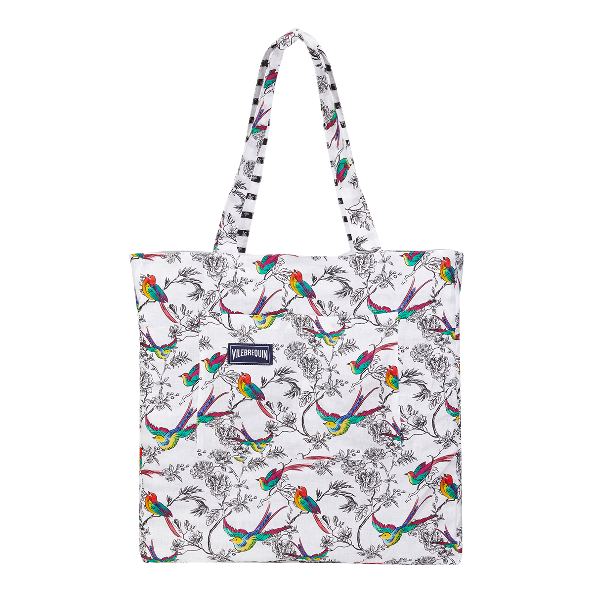 Her iki tarafında farklı göz alıcı baskılara sahip bu çift yönlü keten çantayla plajda veya havuz kenarında kusursuz görünün.