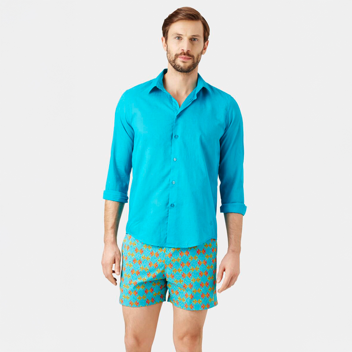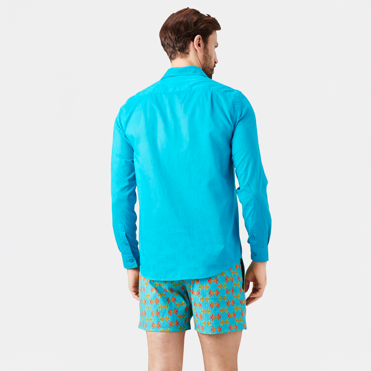 Yumuşak ve hafif pamuklu kumaşı ile Vilebrequin Caracal gömlek her stile uygundur. Zamansız bir stil ve mutlak konfor sağlayan bu uzun kollu gömlek önündeki aynı tonda işlemeli ikonik kaplumbağa logosuyla dikkat çekiyor.
