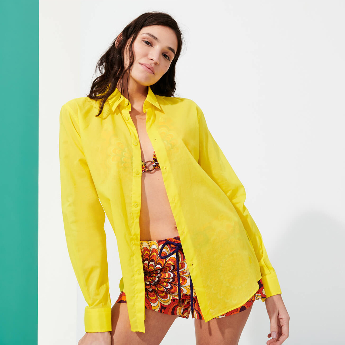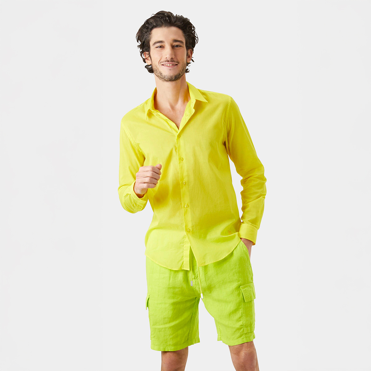 Yumuşak ve hafif pamuklu kumaşı ile Vilebrequin Caracal gömlek her stile uygundur. Zamansız bir stil ve mutlak konfor sağlayan bu uzun kollu gömlek önündeki aynı tonda işlemeli ikonik kaplumbağa logosuyla dikkat çekiyor.